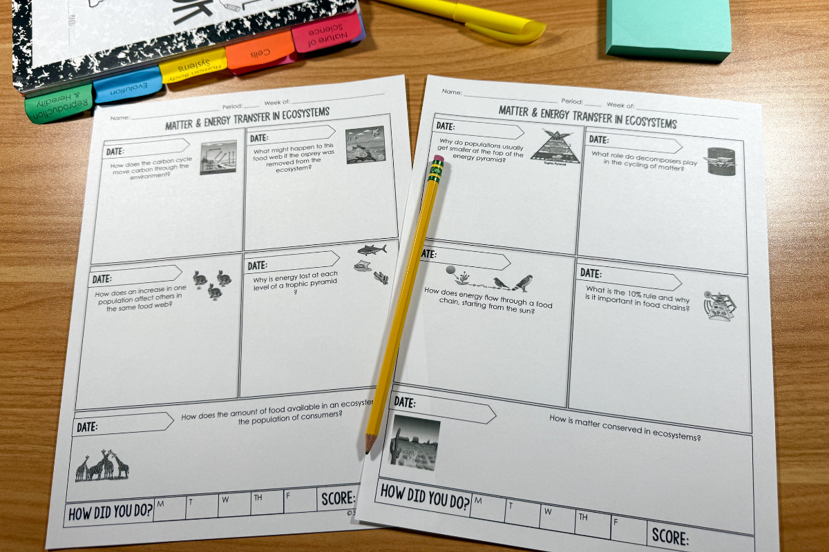 🔬Matter and Energy Transfer in Ecosystems Warm Ups/Exit Tickets
