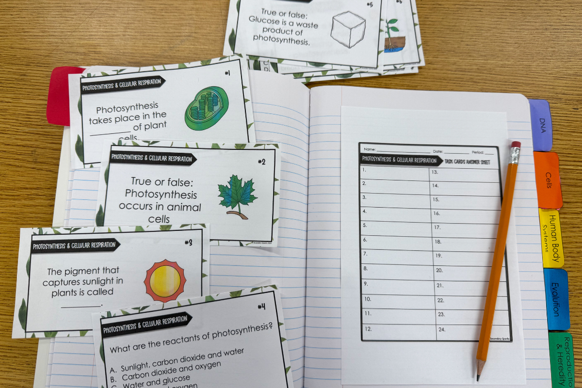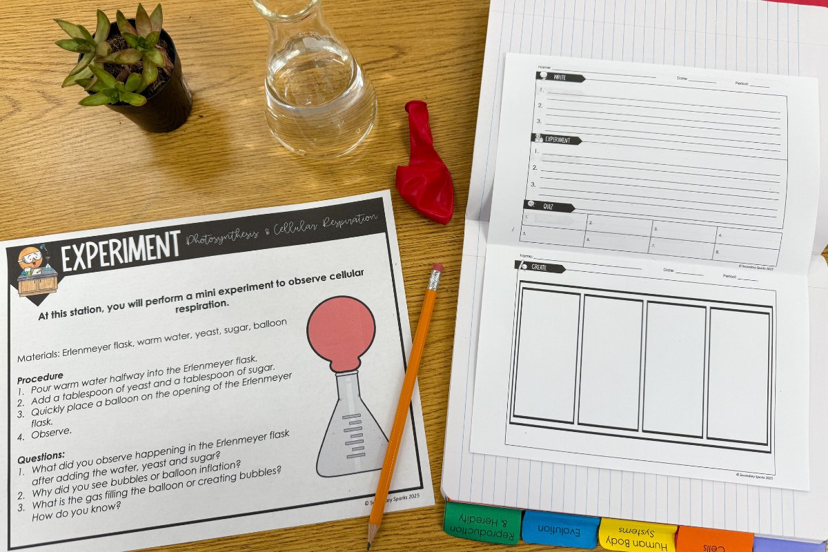 Photosynthesis and cellular respiration help students understand how energy flows through living organisms. In these middle school life science lessons, students explore how plants use sunlight, carbon dioxide, and water to produce glucose and oxygen through photosynthesis, and how cells break down glucose using oxygen to release energy through cellular respiration. Through engaging photosynthesis and cellular respiration activities for middle school, labs, and interactive models, students learn how these two processes are interconnected and essential for life on Earth.